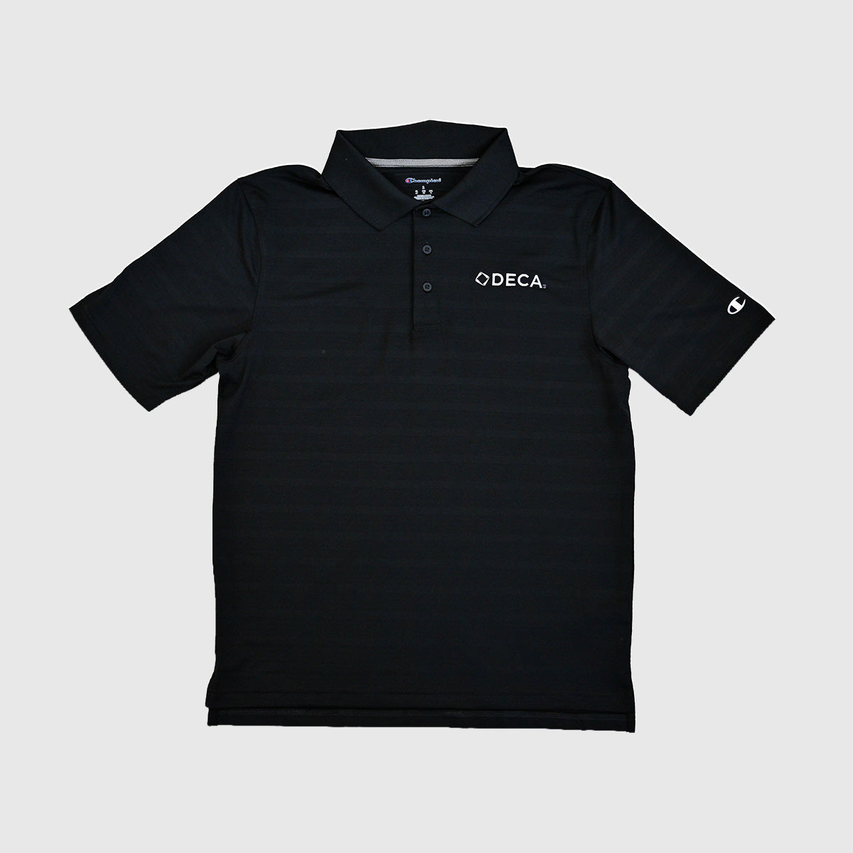Textured Solid Polo from $ 30.00 Color Light Blue Cardinal Black Size S M L XL 2XL 3XL Qty. Add to Cart This item is a recurring or deferred purchase. By continuing, I agree to the cancellation policy and authorize you to charge my payment method at the prices, frequency and dates listed on this page until my order is fulfilled or I cancel, if permitted. This item is currently on order. But fear not! You can still purchase it now and we'll ship as soon as more become available. Champion Textured Solid Polo is great for events and everyday wear. 100% polyester textured stripe jacquard with rib knit collar and 3-button placket. Unisex fit and sizing. Embroidered DECA logo on left chest. Tweet